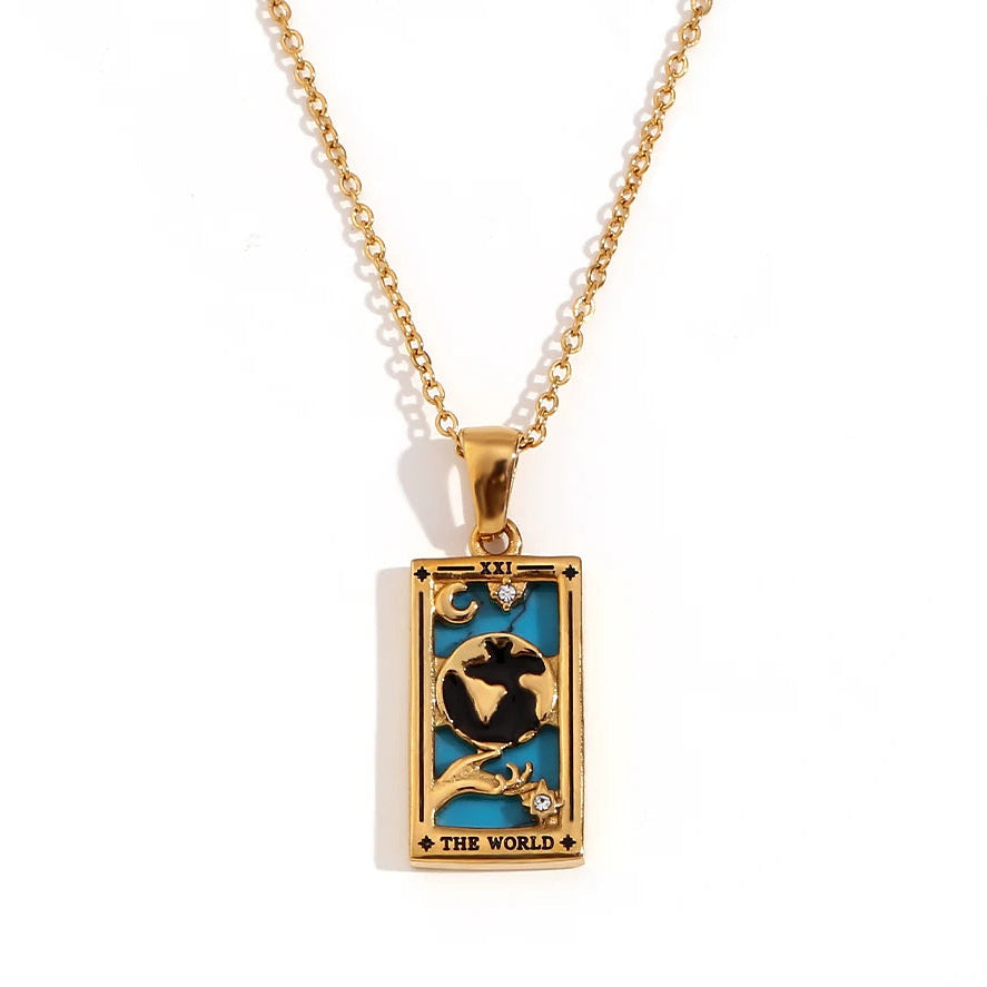 THE WORLD - Tarot NecklaceThe World is a symbol of completion and harmony. Rooted in wholeness and balance, it invites you to honor how far you have come and to step into your next chapter with confidence, fulfillment, and trust in your place within the greater cycle.